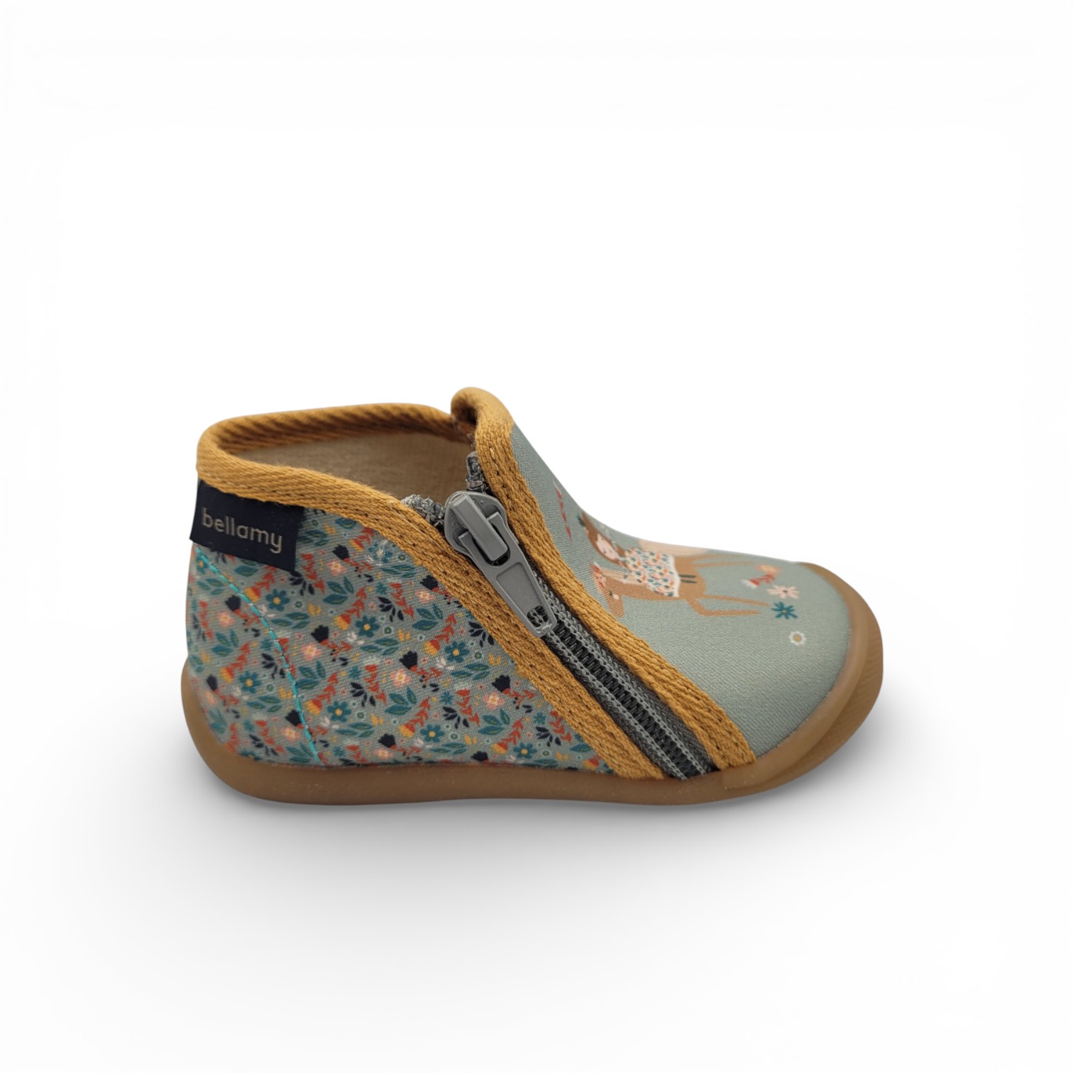 Bellamy conçoit ce modèle avec des matières textiles confortables, pensées pour l’intérieur. Ainsi, le pied reste bien au chaud sans surchauffe. Le textile souple respecte les mouvements naturels. L’enfant se sent libre à chaque pas.