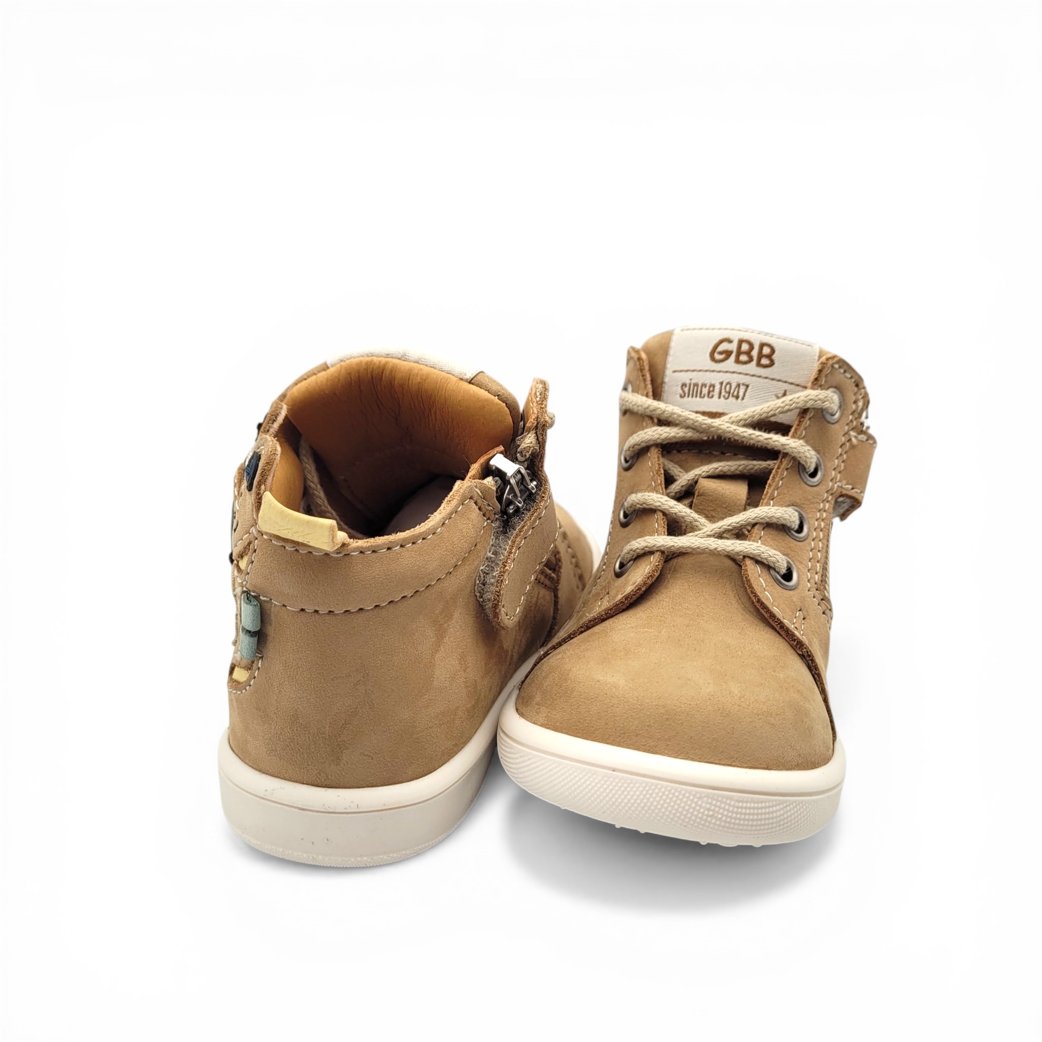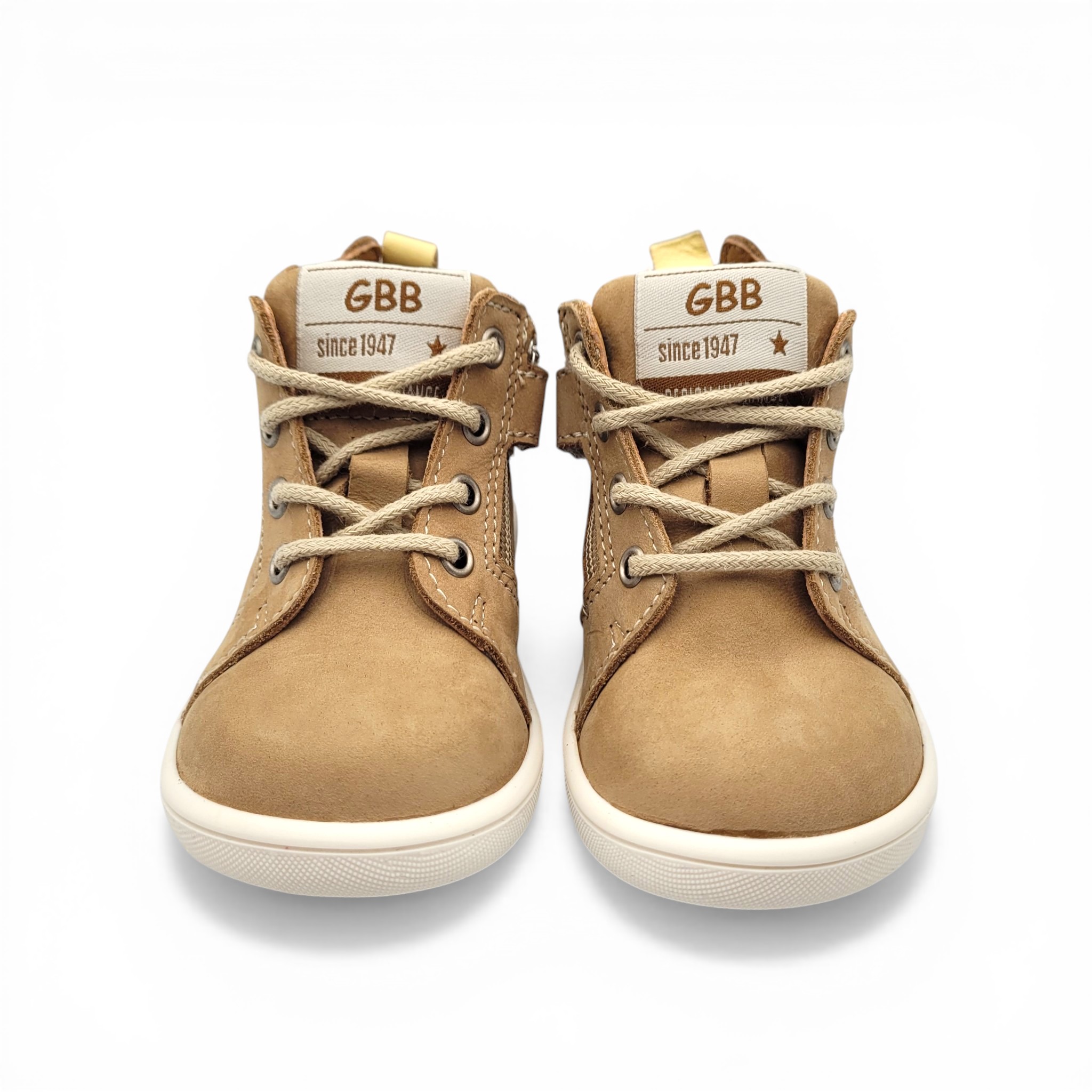 Chaussure enfant GBB Basile sable conçue en cuir souple pour garantir confort et maintien. Sa semelle robuste accompagne les enfants dans leurs aventures quotidiennes tout en respectant la forme naturelle du pied.