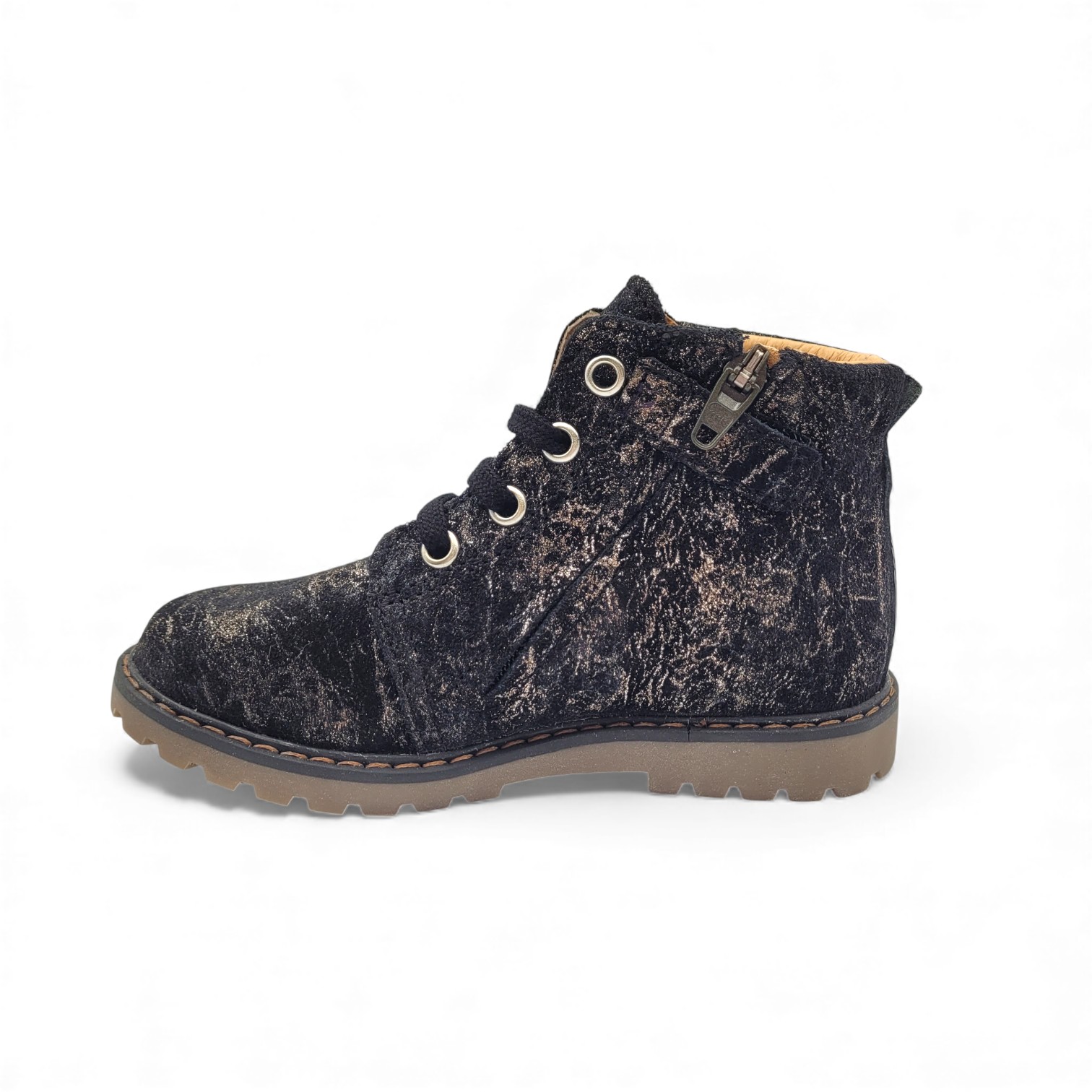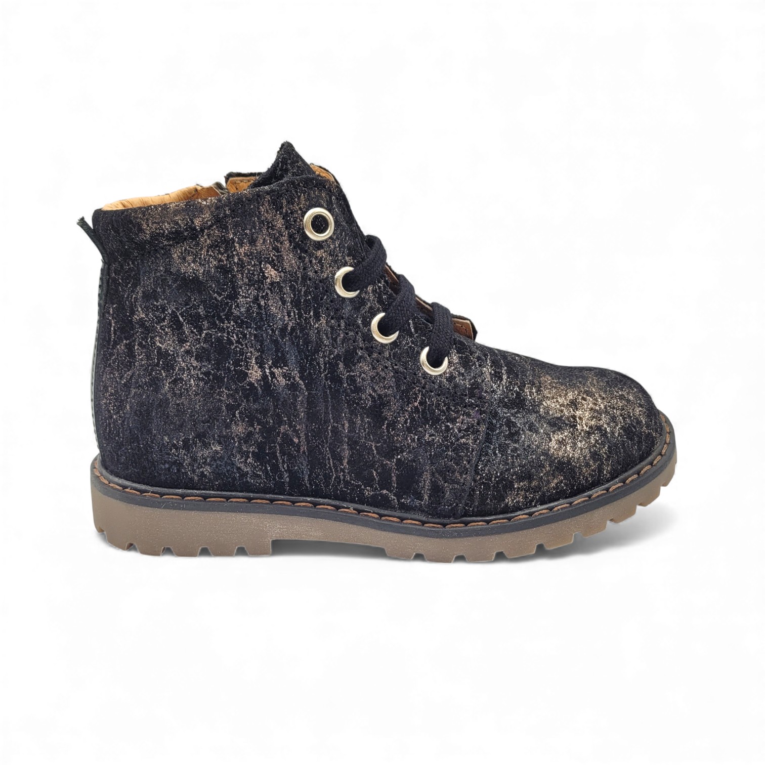 Pensée pour l’automne et l’hiver, elle protège efficacement le pied. Le cuir extérieur résiste aux variations de température et aux journées actives. La cheville reste bien maintenue, ce qui rassure à chaque pas. Le laçage permet un ajustement précis, tandis que la fermeture éclair simplifie l’enfilage. L’enfant gagne rapidement en autonomie.